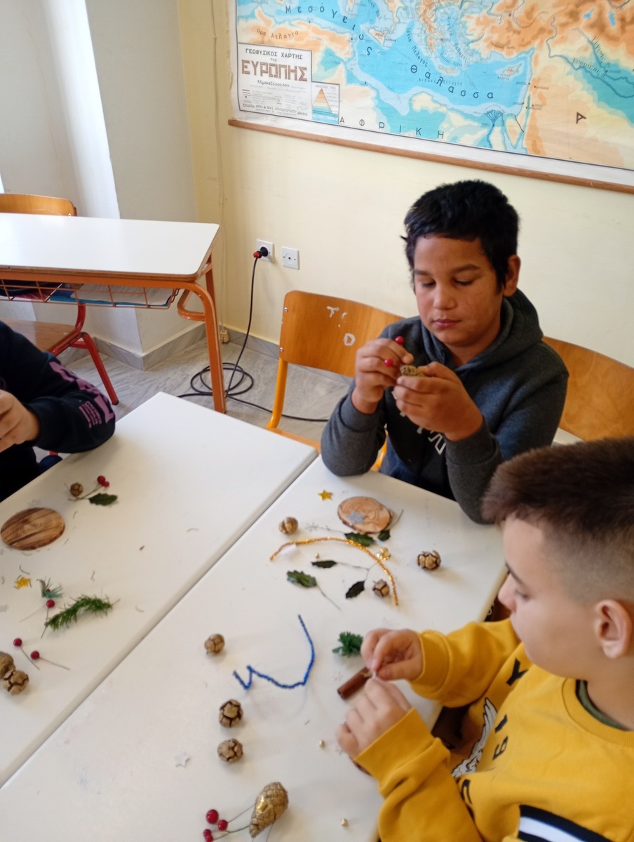 Σήμερα, το σχολείο μας επισκέφτηκε το 29ο Δημοτικό Σχολείο Πατρών, στο πλαίσιο του περιβαλλοντικού μας προγράμματος «Μια φορά ήταν η φύση». Μαζί με τους μαθητές και τις μαθήτριες της Ε και ΣΤ τάξης του 29ου Δημοτικού Σχολείου, δημιουργήσαμε χριστουγεννιάτικες κατασκευές από κουκουνάρια που είχαμε μαζέψει κατά την επίσκεψή μας στο Δασύλλιο τον Σεπτέμβριο.